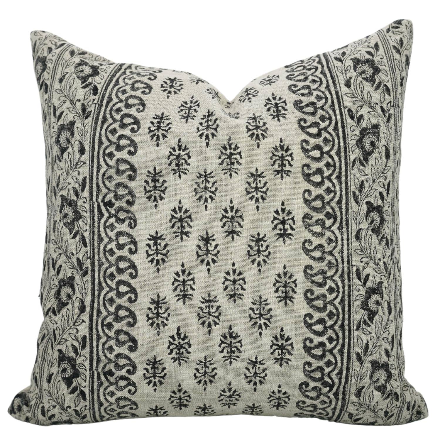 Flower Buta design on Thick Linen 20” X 20”. Pillow insert included.