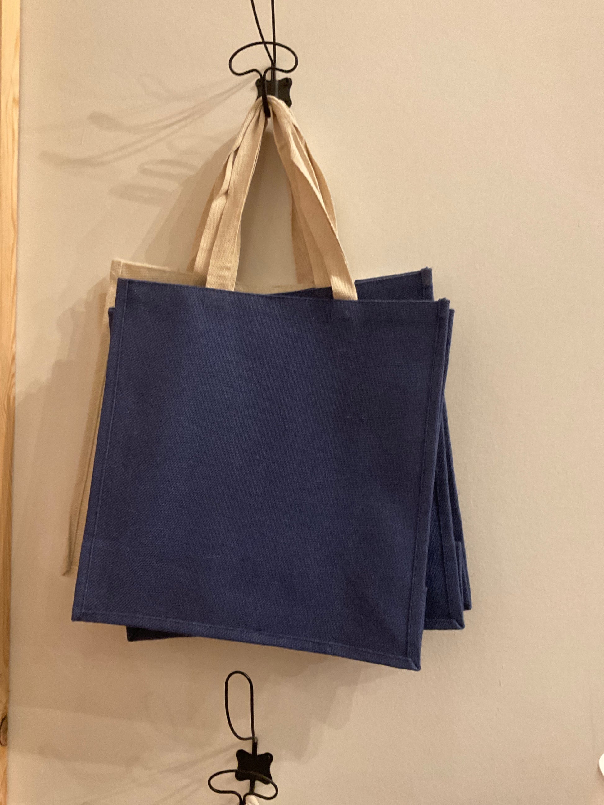 Material: [Canvas or cotton exterior, lined with natural jute]