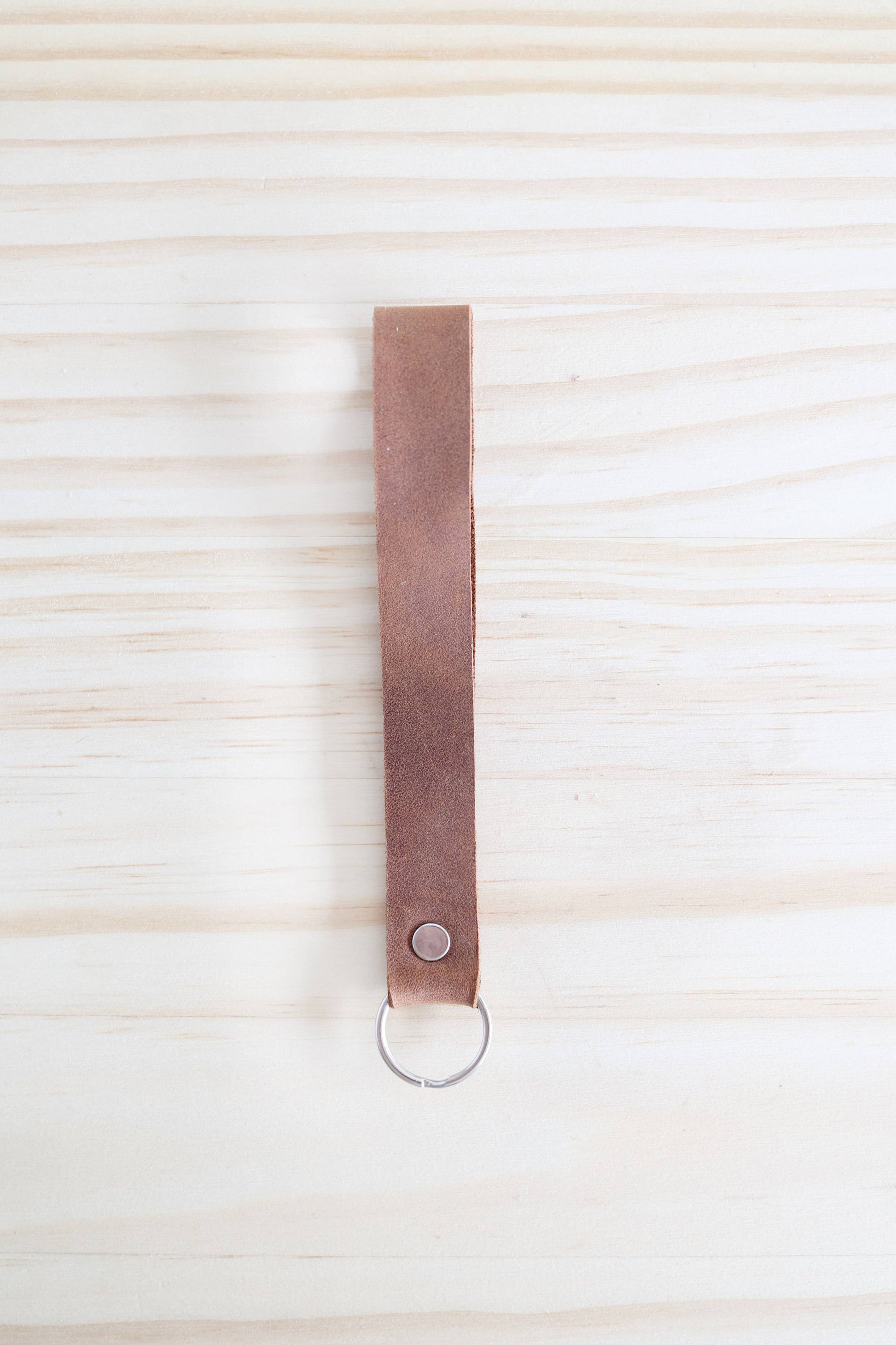 Both practical and effortlessly stylish, this keychain wristlet is designed to age gracefully—growing softer and developing a rich, weathered character with every use. Crafted for durability, it’s a dependable companion built to last through all of life’s adventures. Leather wristlet measures approximately: .75 inches wide and 6 inches long Metal ring measures 1 inch in diameter Each item is handmade and measurements may vary slightly. As leather is a natural material, color tone and texture may vary slightly from item to item. This is all natural leather and will develop its own unique patina and darken slightly over time.