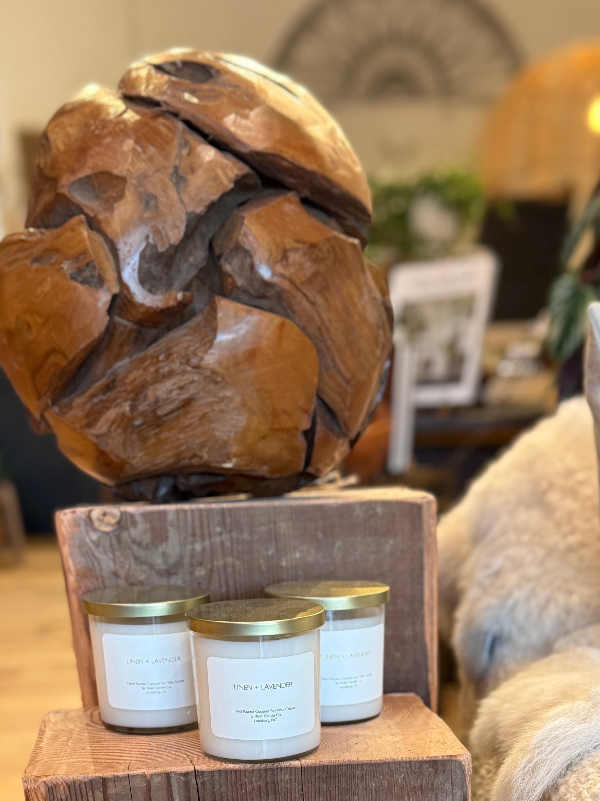 A true statement piece, this organic teak wood sculpture (13" diameter) brings natural artistry and texture to any space. Each angle reveals unique grain patterns and hand-carved forms, making it a one-of-a-kind addition to shelves, consoles, or floor displays.